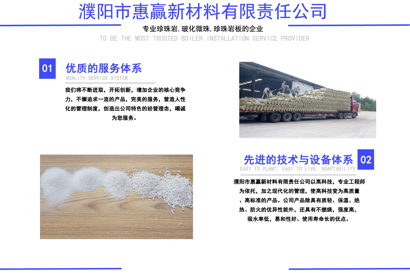 濮陽(yáng)市惠贏新材料有限責(zé)任公司是一家專業(yè)生產(chǎn)保溫材料的廠家,位于范縣王樓鎮(zhèn)工業(yè)區(qū),專業(yè)生產(chǎn)珍珠巖、珍珠巖保溫板、玻化微珠等保溫建材,主要用于外墻保溫、屋面保溫、園藝等領(lǐng)域,產(chǎn)品暢銷國(guó)內(nèi)外,深受客戶一致好評(píng)。我們擁有優(yōu)秀的產(chǎn)品和服務(wù),在成立以來(lái)都以誠(chéng)信對(duì)待客戶! 公司擁有各類專業(yè)人才,技術(shù)人員50人,運(yùn)輸40人,專業(yè)的十多輛運(yùn)輸車輛。產(chǎn)品銷售網(wǎng)絡(luò)遍及國(guó)內(nèi)20多個(gè)省市,十幾年來(lái),通過(guò)公司的不懈努力和誠(chéng)信經(jīng)營(yíng)理念,產(chǎn)品質(zhì)量可靠,價(jià)格合理,深受廣大客戶認(rèn)可和好評(píng)! 我公司本著以客戶為本,客觀實(shí)際,創(chuàng)新發(fā)展的原則,在追求完美極致的道路上努力打造行業(yè)新標(biāo)準(zhǔn),我公司憑借卓越的產(chǎn)品質(zhì)量、完善的服務(wù)標(biāo)準(zhǔn)、良好的口碑信譽(yù)、竭誠(chéng)歡迎廣大客戶前來(lái)洽談業(yè)務(wù)!...